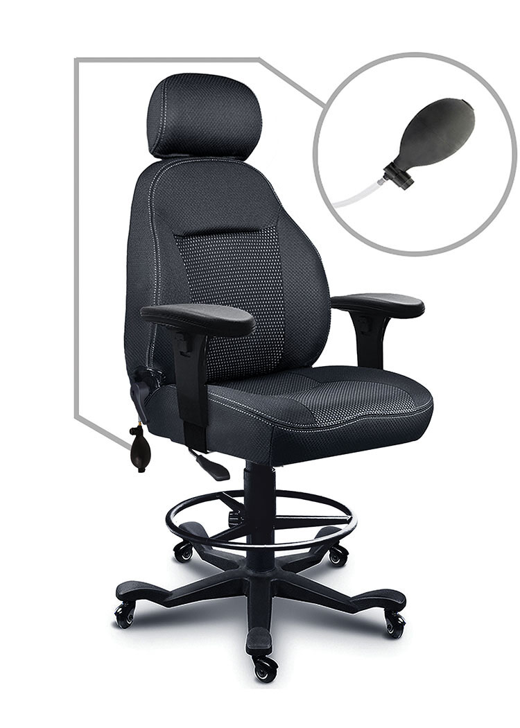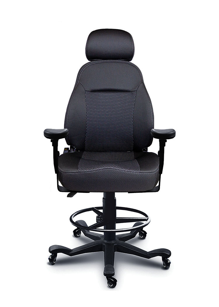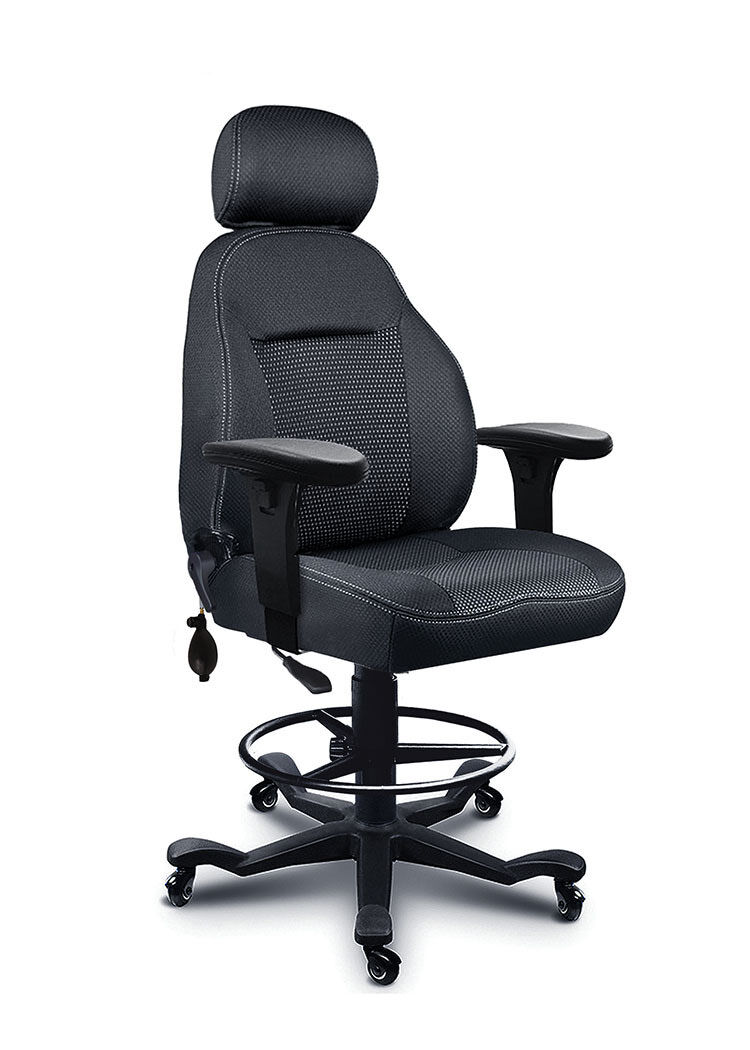 Drafting Black Cloth Office Chair with Neoprene Wheels and T Armrests