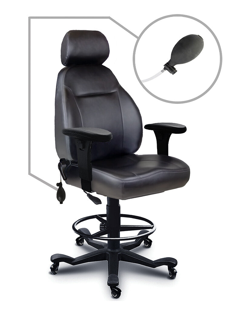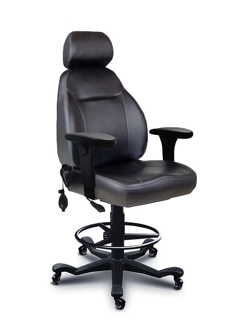 Drafting Black Vinyl Office Chair with Neoprene Wheels and T Armrests