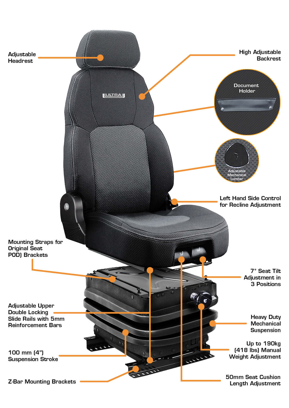 - Z-Bar Mounting Brackets Shipped with Seat (See Z-Bar Dimensions Download for Mounting Options)